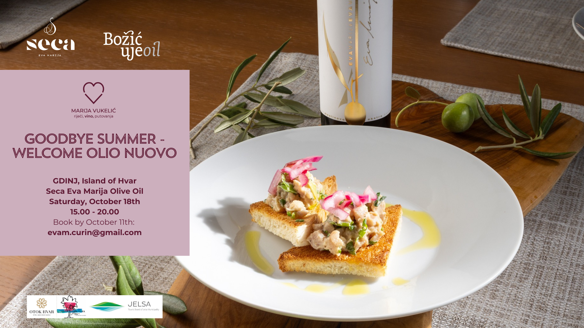 U subotu, 18.10.2025. od 15-20h u kušaonici Seca u Gdinju, održat će se posebna svečanost zatvaranja ljetne sezone područja općine Jelsa, na otoku Hvaru, uz predstavljanje novih maslinovih ulja. Kušaonica Eva Marija Seca je domaćin događaja na kojemu će se, u suradnji s TZ općine Jelsa predstaviti najbolji maslinari općine uz posebne zalogaje i vrhunska hvarska vina, prema ideji Marije Vukelić. Pročitaj više